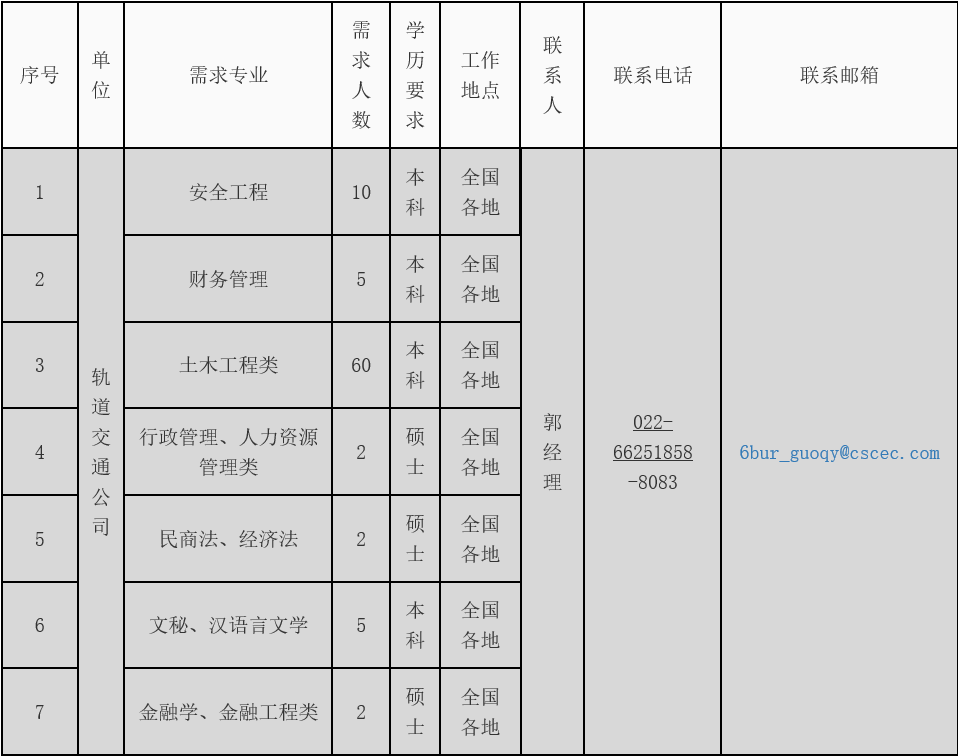 7. 更多校招信息请关注“六局青年V5”,搜索“六局青年V5”或添加微信号“cscec6youth”。