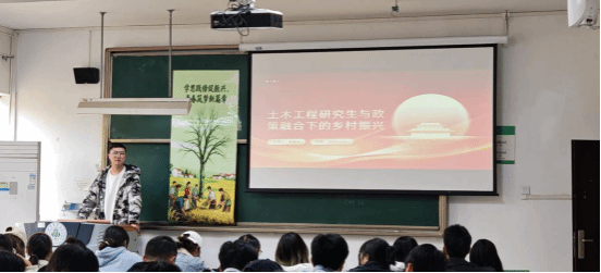 为深入学习贯彻乡村振兴战略精神,推动青年学子将专业所学融入乡村发展,11月13日下午,建筑与城乡规划学院“学思践悟促振兴,青春筑梦新篇章”乡村振兴主题党员大讲堂在1317教室顺利举行。本次活动由学院研究生会、研究生第一党支部和第二党支部共同举办,各支部党员代表、“自然智绘者”社会实践团队及各年级学生代表积极参与。