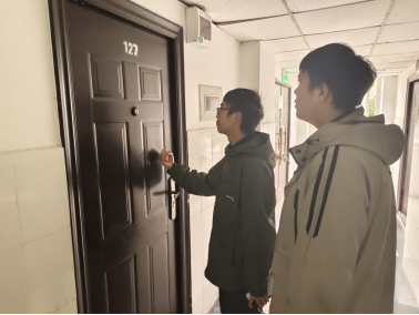 图为活动工作人员入寝走访